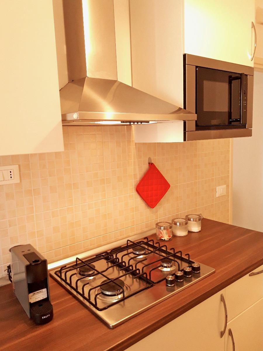 Luminoso e silenzioso, l'appartamento ha un'ampia stanza da letto matrimoniale a cui si può aggiungere un lettino per bambini fino a 36 mesi. Dalla stanza da letto si accede ad un balcone panoramico. Il soggiorno ha un comodo divano letto per due persone, tavolo e SMART TV. La cucina è completa di stoviglie e pentole ed è a disposizione una macchina per il caffè Nespresso. Il bagno ha doccia e lavatrice.
